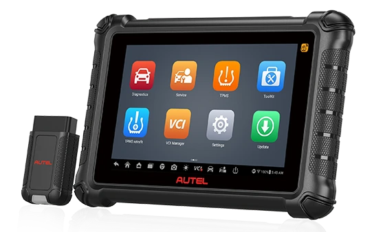 Der Tester ist ein eigenständiges Werkstattgerät der neuesten AUTEL-Tester-Serie, ausgestattet mit einem 8-Zoll-Touchscreen, Kamera mit Blitz sowie einer robusten, gummierten Werkstatt-Schutzhülle (Rugged). Angetrieben wird er vom schnellen Betriebssystem Android 11.